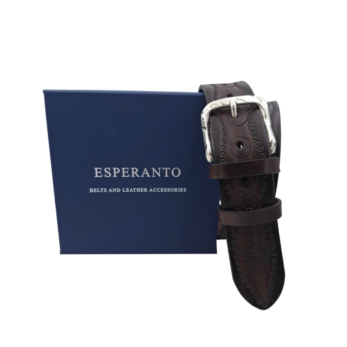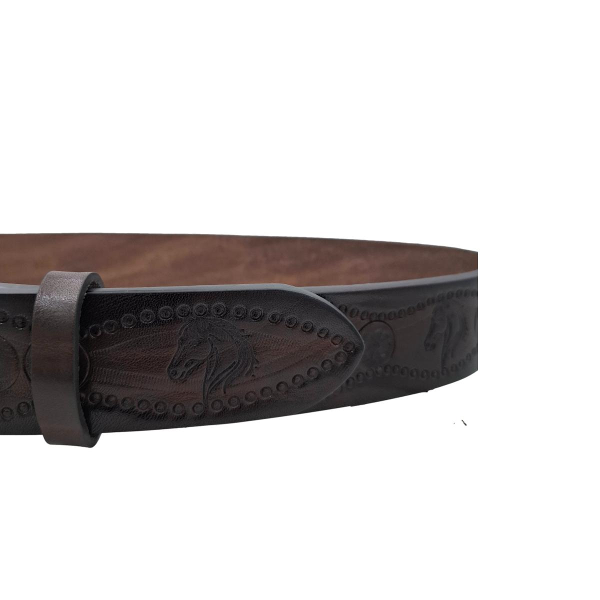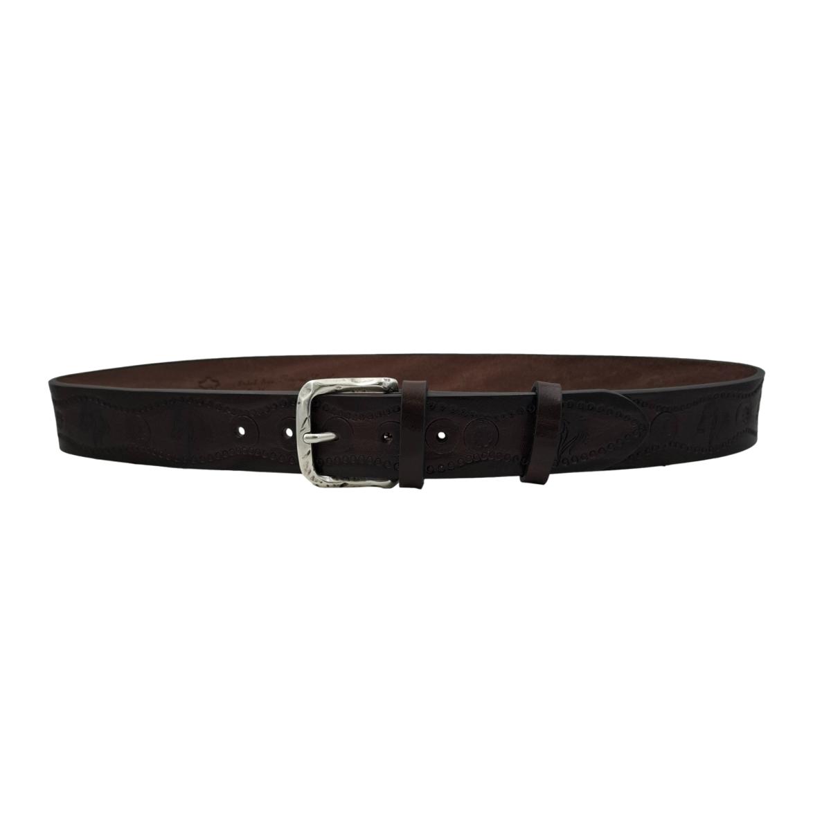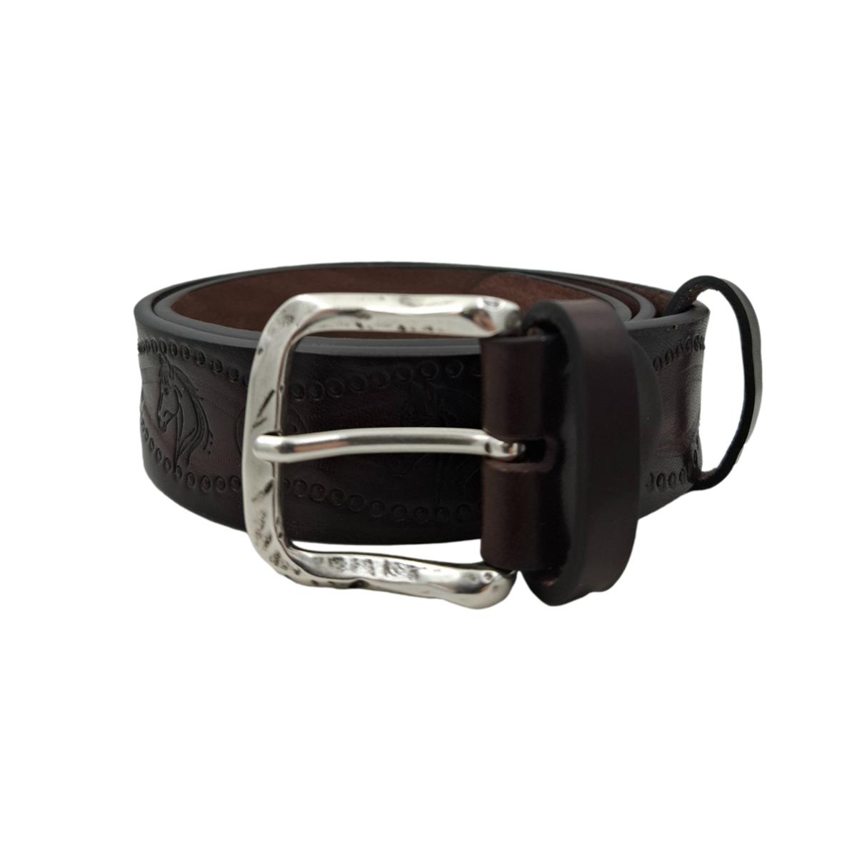 Cintura 4 cm in vero cuoio di toro spessore 3,8/4 mm con stampa a caldo di fantasie di cavalli e ricami fatti a mano.