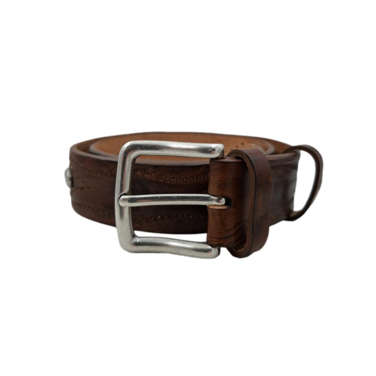 Cintura 4 cm in vero cuoio di toro spessore 3,8/4 mm color caramello completamente lavorata a mano.