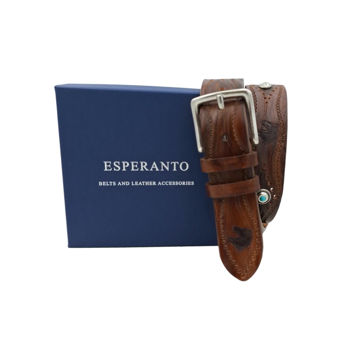 🔥 NOVITA' 🔥 Caramel Horses - Cintura 4 cm Caramello con fibbia in ottone, borchie e ricami di cavalli