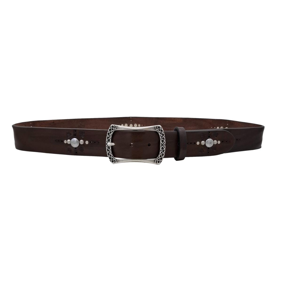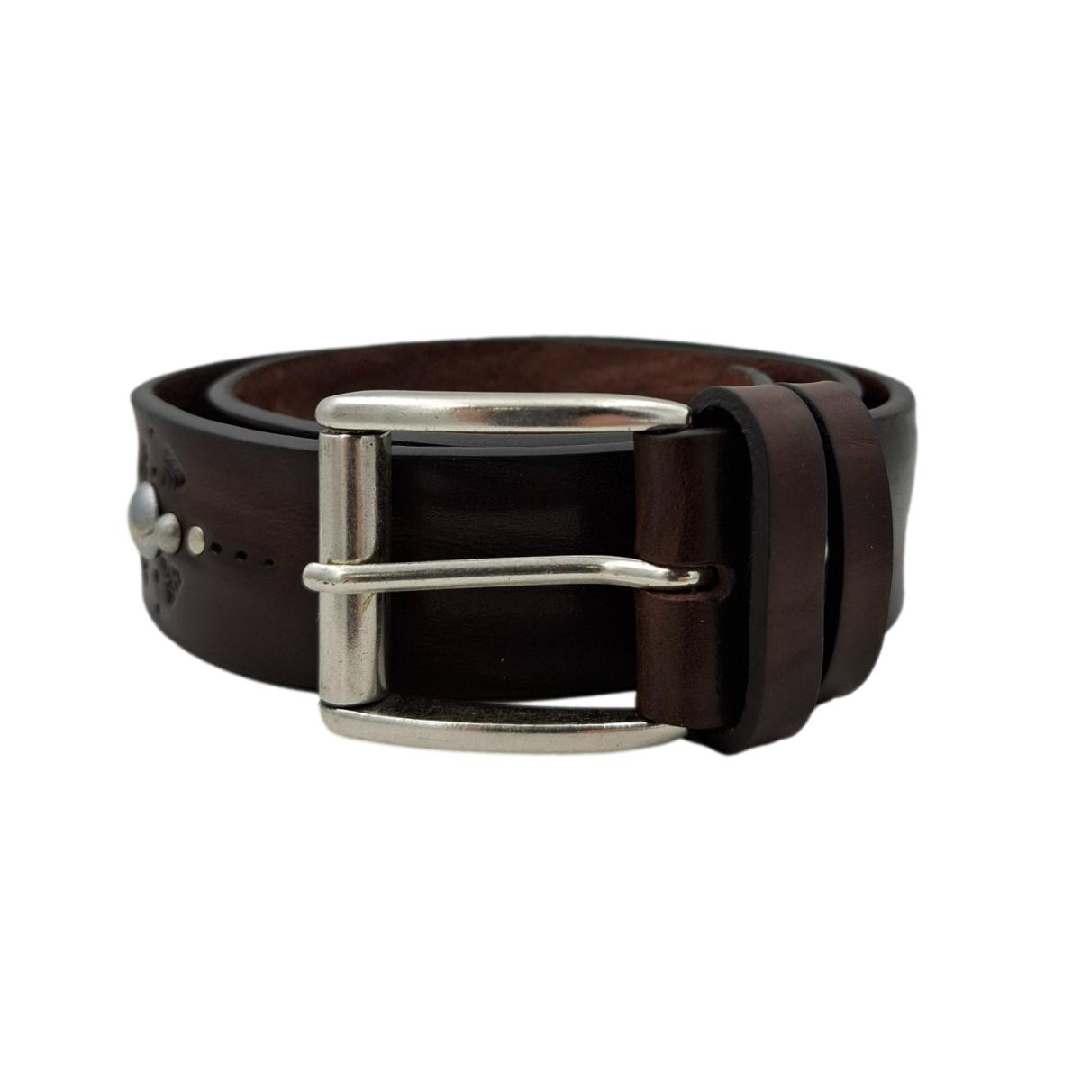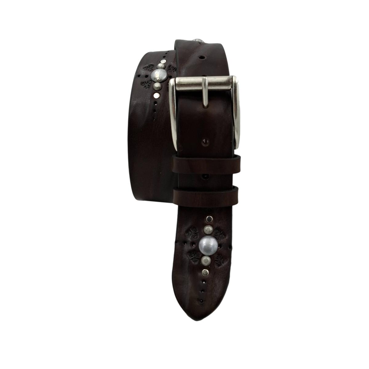 Cintura 4 cm in vero cuoio di toro Testa di moro spessore 3,8/4 mm con borchie sferiche e ricami totalmente fatti a mano.
