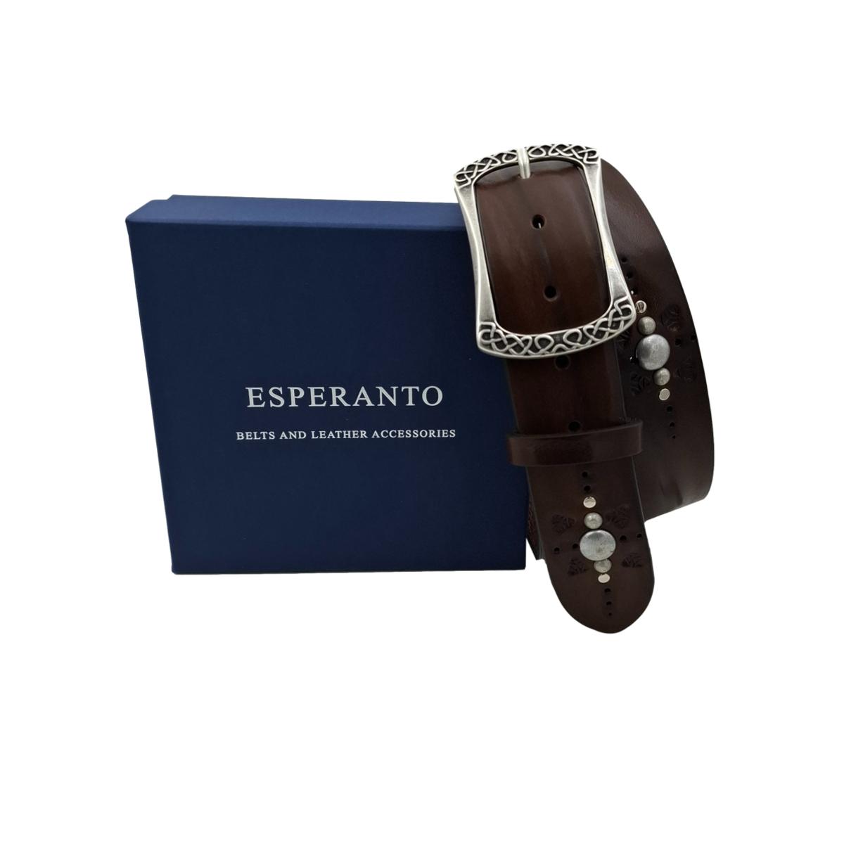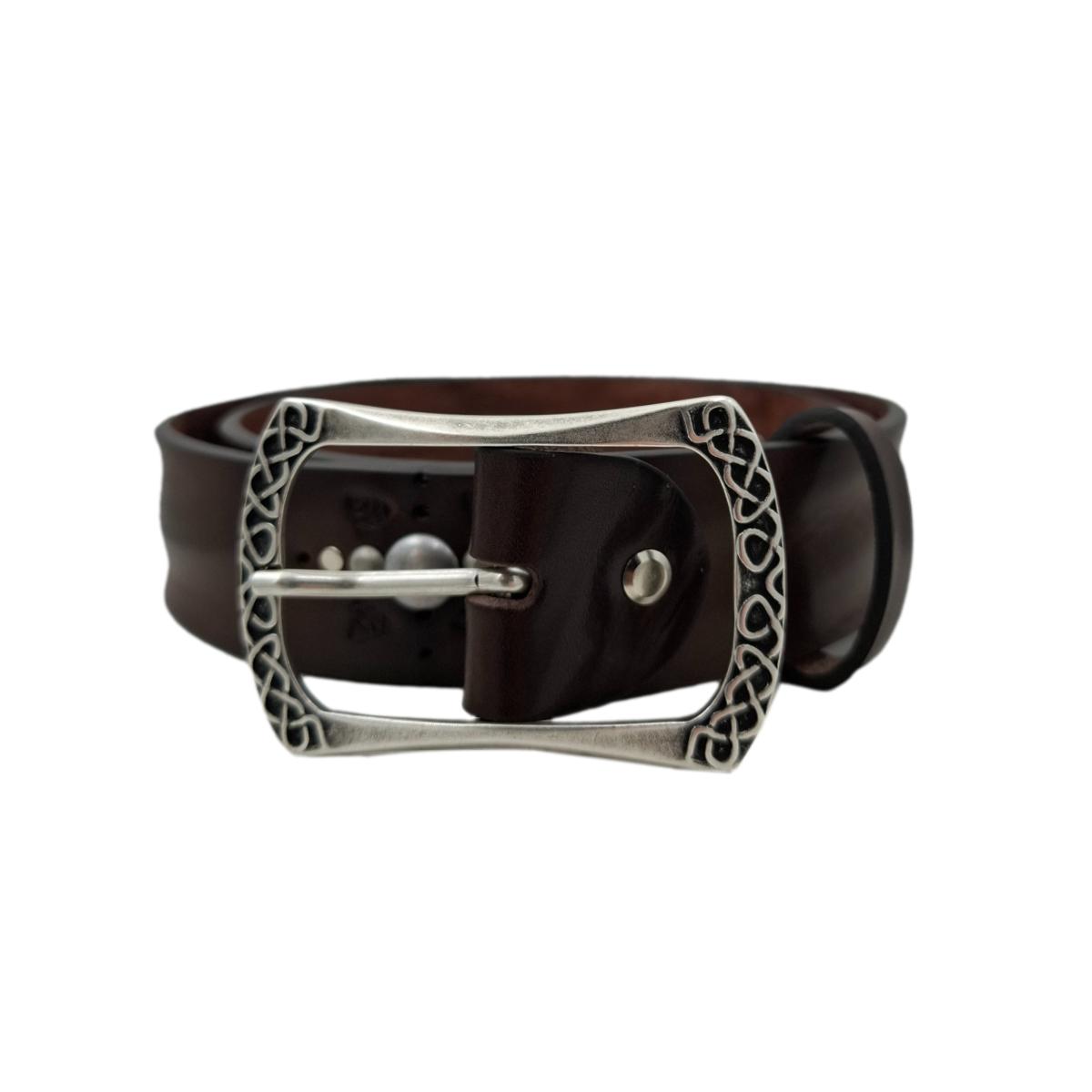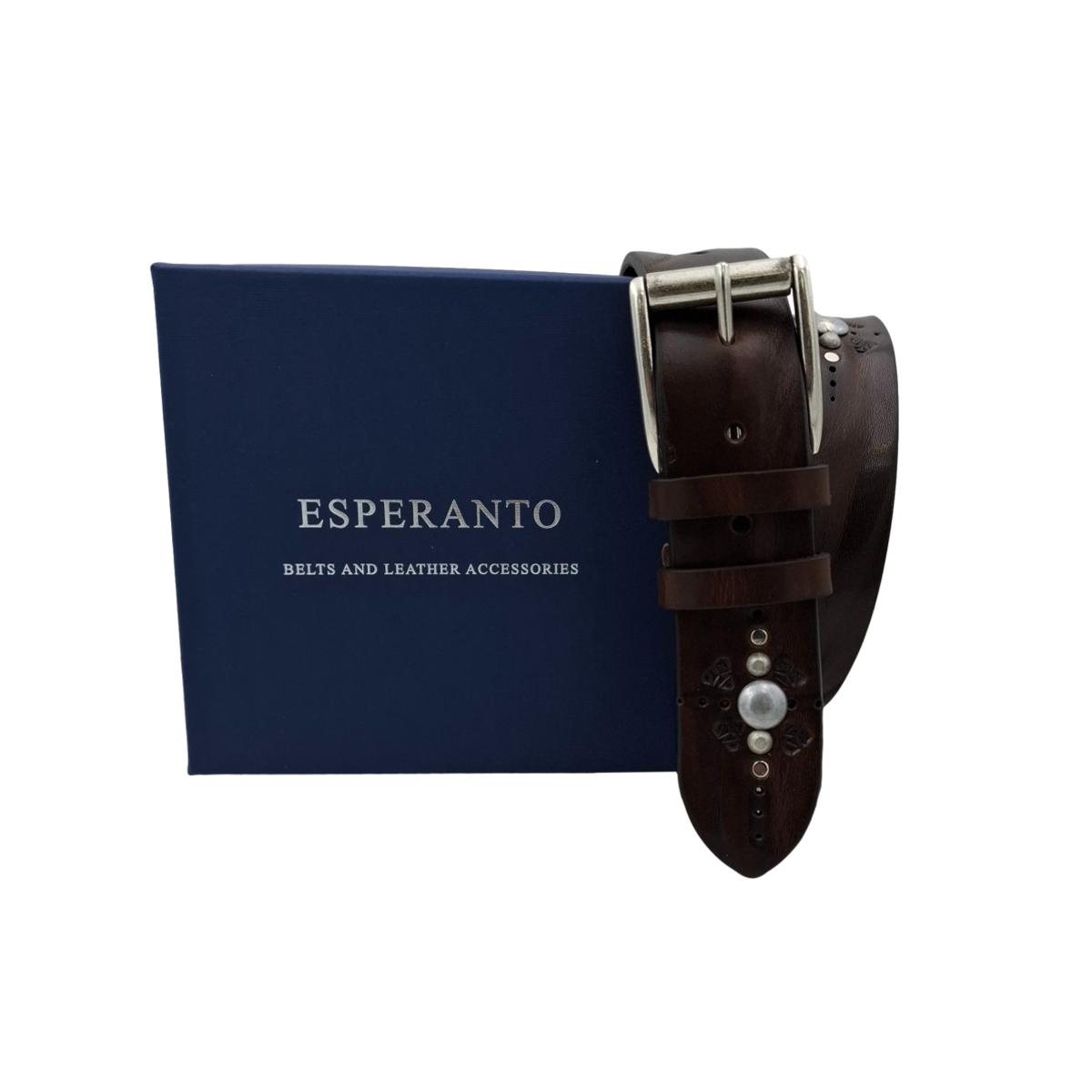 Cintura 4 cm in vero cuoio di toro Testa di moro spessore 3,8/4 mm con borchie sferiche e ricami totalmente fatti a mano.